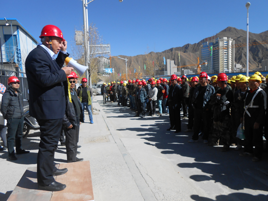 11月12日,第十一工程局拉薩指揮部組織中太·城市廣場項目部及施工隊全體人員召開了安全宣傳學習大會。此次會議由項目部經理高進來及集團安全總監兼項目部生產經理郝建東共同主持,監理公司總監及項目東西區負責人均在會上宣誓并對員工提出安全生產相關要求,并鼓勵和號召工人加強自我防范意識,保證工程順利安全完工。