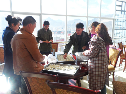 “我為大家包餃子”活動名稱,正體現(xiàn)了十一局拉薩員工相互關(guān)心、相互照顧的融洽工作氛圍。員工輪流到食堂為大家包餃子,場面異常熱烈,其樂融融。等待熱騰騰餃子出爐的時間里,所有員工圍在大蛋糕前,為12月份過生日的同事送上祝福并獻唱生日歌。