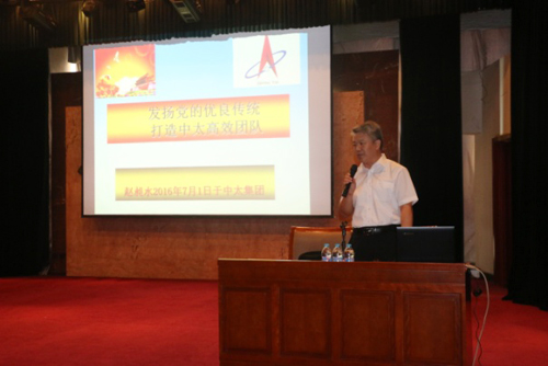北京青年創(chuàng)業(yè)基地導(dǎo)師趙昶水同志概括地講解了中國共產(chǎn)黨建黨95周年的發(fā)展歷史和輝煌成就;并從中太的發(fā)展歷史與抗震救災(zāi)和胡錦濤同志視察中太等典型例子講解了中太品牌文化(召之即來,來之能戰(zhàn),戰(zhàn)之能勝)的內(nèi)涵;從職業(yè)精神、職業(yè)能力、職業(yè)水平、職業(yè)操守到學(xué)習(xí)力、凝聚力、行動(dòng)力、創(chuàng)新力的“四個(gè)力”,再到落實(shí)執(zhí)行力的十個(gè)度,即(態(tài)度,喜歡單位,尊重領(lǐng)導(dǎo),熱愛工作;速度,兩天的事情一天完成;力度,全力以赴;高度,高標(biāo)準(zhǔn)、嚴(yán)要求;深度,一深入就具體,一具體就深入;角度,找好工作的切入點(diǎn);廣度,全面看問題,綜合解決問題;精度,實(shí)施精良管理,細(xì)節(jié)決定成敗;尺度,做人講原則,做事講規(guī)則;韌度……)等內(nèi)容。就如何做好合格黨員,爭(zhēng)當(dāng)優(yōu)秀共產(chǎn)黨員,在“兩學(xué)一做”學(xué)習(xí)教育活動(dòng)中起好模范帶頭作用做了一場(chǎng)精彩的演講。