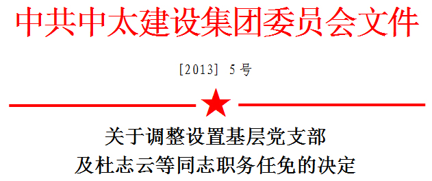 三、原“中太建設集團機關黨支部”更名為“中太建設集團機關第一黨支部”;原“大廈管理處黨支部”更名為“中太建設集團機關第二黨支部”。