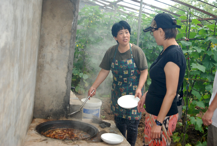 據(jù)第八工程局工作人員介紹,此采摘處約有20畝果樹林地。山上種植著杏兒、桃兒和核桃。山下院內(nèi)菜園里,種植著施用農(nóng)家肥的各類時蔬和植物。以蟲兒、草兒為食、自由散養(yǎng)的雞鴨悠閑漫步在山林中,好一派恬靜如詩、優(yōu)美如畫的田園風光。