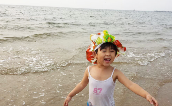 拍了照片后,突然讓我感覺像文清同學媽媽去澳門時住在海景房拍的海景照片! 看完海景就開始了匆忙的換泳衣準備下海,海景公寓的好處就是出來小區走上自己的棧道就是小區的私家海灘,非常干凈。近距離的接觸大海,吹著涼爽的風(天氣多云,溫度在29度),讓我們一行幾個馬上開懷起來,每個人的興奮在臉上流露。孩子是最興奮的,跑到海邊上,任憑海浪一層層的打過來(這天風并不大),孩子說:“媽媽,你看大海碰我了!”竟然用起了擬人句,把大海打過來的浪花比作在“碰”,這字用的多么美妙啊!我一邊欣賞著美景一遍在咂摸著這話,贊嘆著孩子的天真和用詞之妙。我們真的跳入大海浸泡的時候,舅舅在照顧著她,突然一個浪打在了孩子的頭上,孩子嚷著:“我要離開大海了”,這是在身邊的舅舅轉告我的,我在想孩子真是長大了,會表達很多個人的感情了,“啊,我要離開大海了”是一個陳述句,但是好像是表達著一種不舍得離開但是有不得已的感情,她很想在大海里再待一會,但是因為她被浪花打濕了頭發,依她個人的膽量可能害怕了,所以說了句“啊,我要離開大海了”,孩子的成長讓我們自覺不自覺真切感受到了。然后她自己在海灘玩沙子,挖了大大的沙坑,每當海浪沖過來的時候,總是興奮的說:“媽媽大海幫我大忙了,還給其他家人也興奮的嚷嚷,大?墒菐土舜竺α恕。當我問她到底幫了什么忙時,她說:“大海給我的沙坑送來了水啊”(估計是她不用拿著自己的小碗去海邊舀水了)。我感嘆著女兒的天真浪漫和快樂興奮,內心在想:帶著孩子出來玩玩是多么對的選擇,大自然的風光的確是能刺激人的靈感,說了那么多令我平時聽不到的妙字妙語。這趟短途旅行意義非凡!